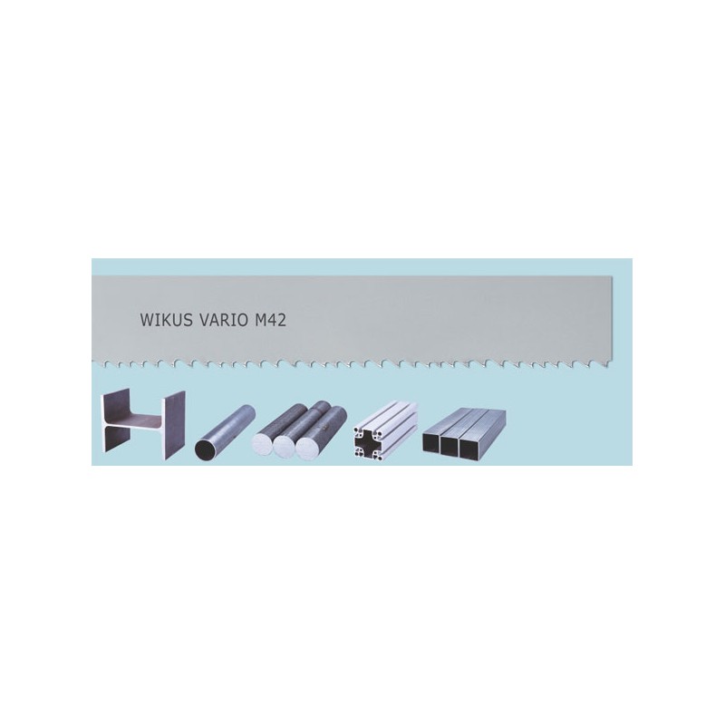 Špičky zubů zhotovené ze zvláště odolné oceli HSS-M 42 společně s variabilním ozubením vytváří nástroj mimořádně vhodný pro sériové řezání vibrujících a neklidných řezů. Nosný materiál pásů je vyroben ze speciální oceli vyráběné pro Wikus s vysokým obsahem legujících prvků a 4% chromu. Tento materiál zajišťuje vysokou dynamickou pevnost a odolnost proti opotřebení.