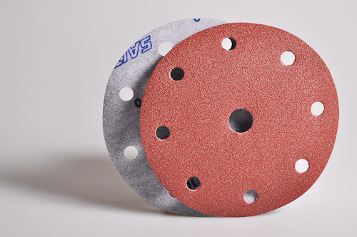 Kruhový papírový brusný výsek se suchým zipem o průměru 150,zrnitost 36, 8 děr o průměru 10mm na rozteči 120mm + 1 středový otvor 17mm