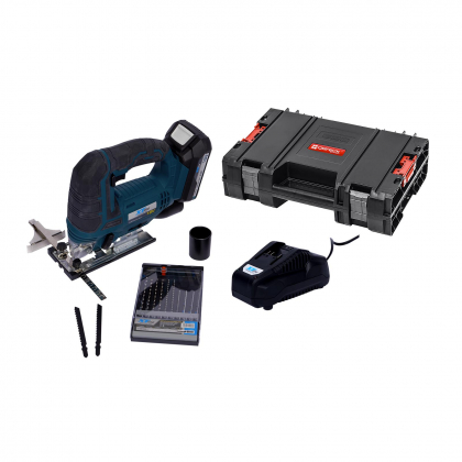 - XTline Aku přimočará pila 18V + baterie 2Ah + nabíječka 3.5A + pilové plátky + box
